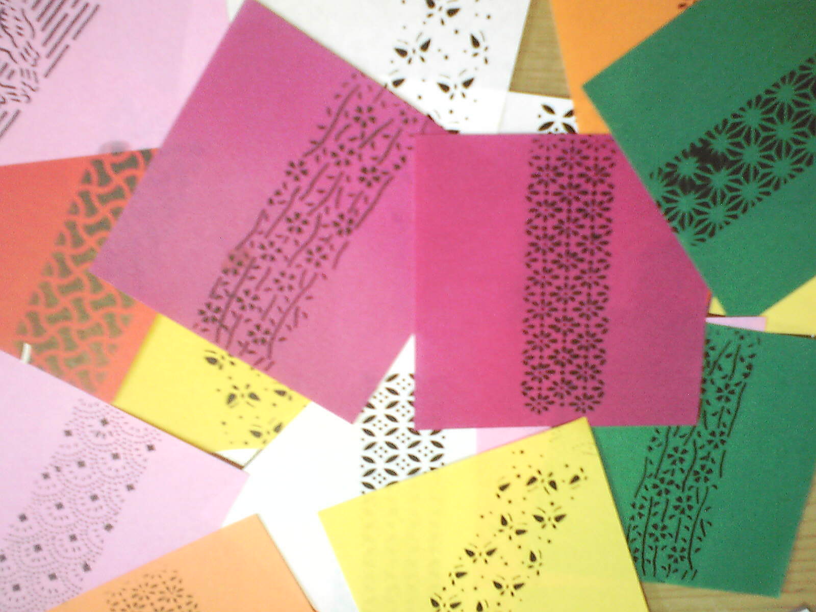 こちらは作業するところが家なので、電気代節約とクーラーを付けずにやってるせいか、汗だくです。。 ちょっとできたのでアップします。 サイズは小さい折り紙で、小紋と呼ばれる柄を彫ってます。 売値は今のところ3枚で200円以上だと嬉しいなぁ…と思案中。。 こんな柄欲しい!とか、 ○円までだったら買う!とかあれば教えてください。 |