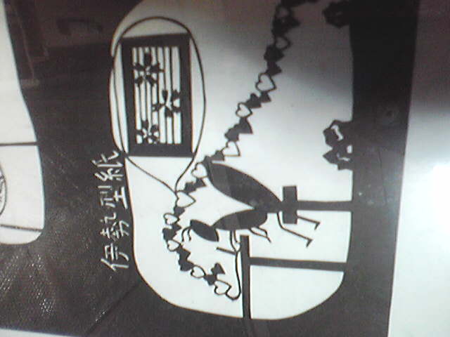 伊勢型紙…飛鳥時代とか、聖徳太子とかのころからある、柿渋の紙を使って型を彫り、糊を使って型の模様を布に写し、着物などの柄にする伝統工芸です。