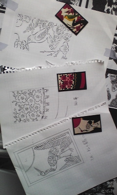 花札柄、1月、2月、3月の20点札が下書き出来ました。
